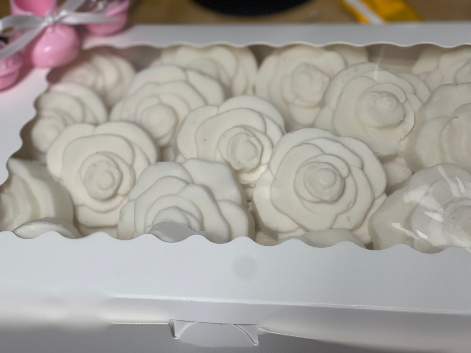 Our baby girl gift box comes with 16 beautiful Shea Butter soaps. These soaps will leave your guests skin soft and they will love it. What a great way to show your appreciation on such an important day. Each bar comes with a muslin bag, so guest can carry the soap in a safe and eco friendly manner.