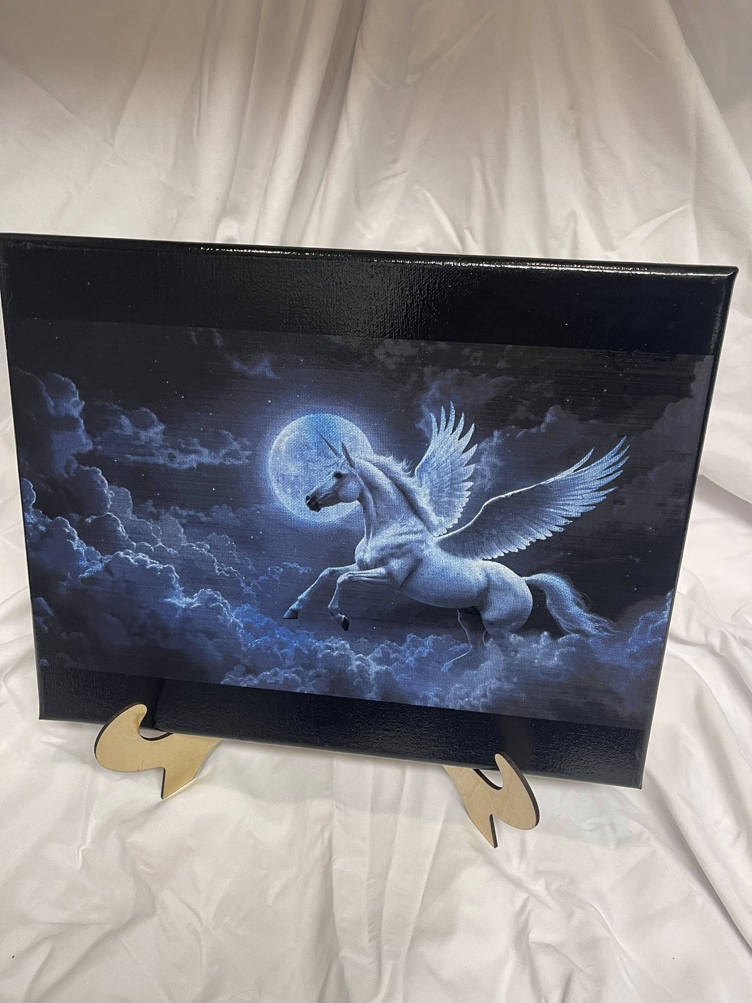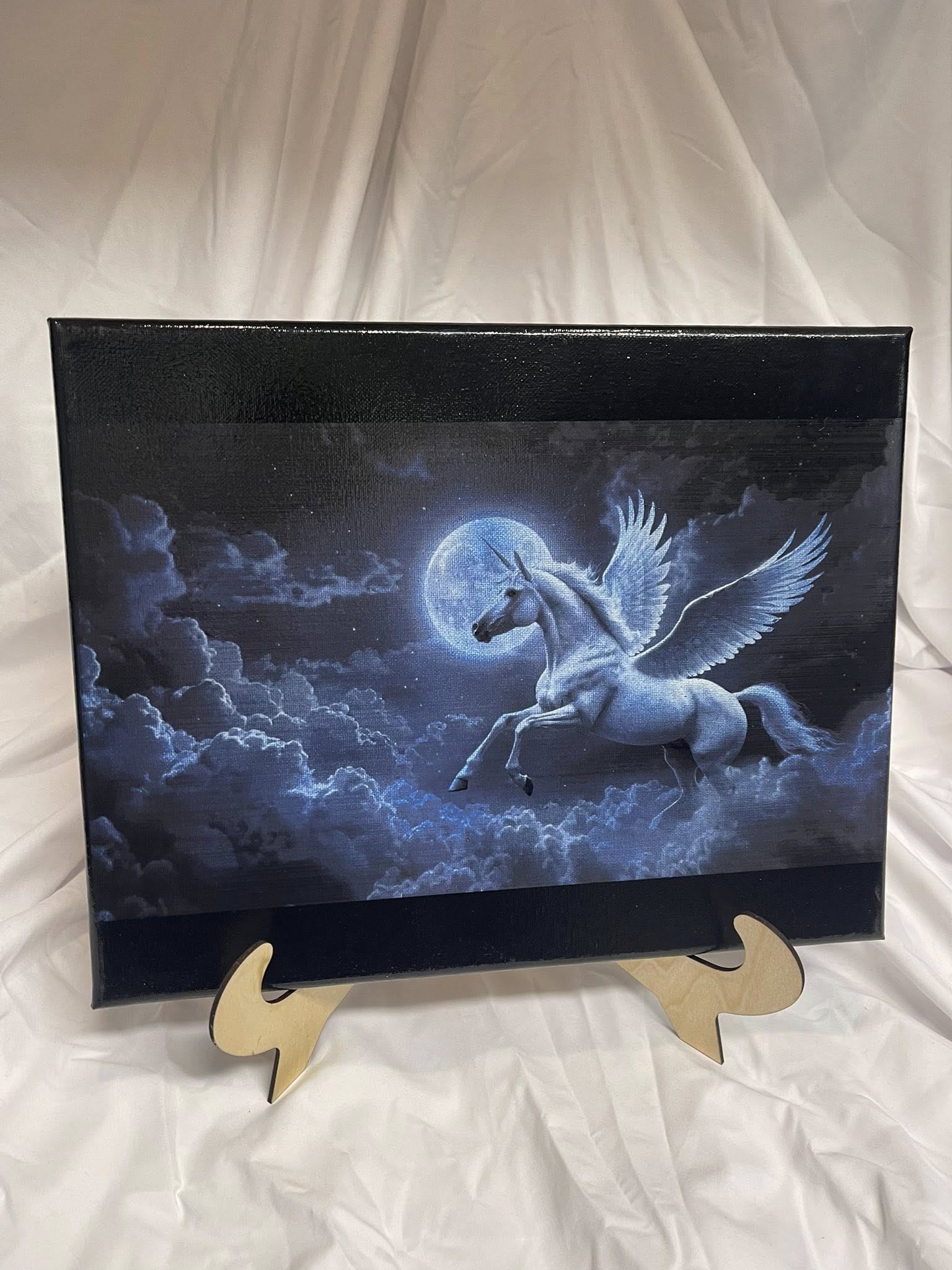 Our Pegasus in the Midnight Sky is a beautiful piece to add to your collection. This print is 11X14 and has a clear coat to reduce fading from sunlight.